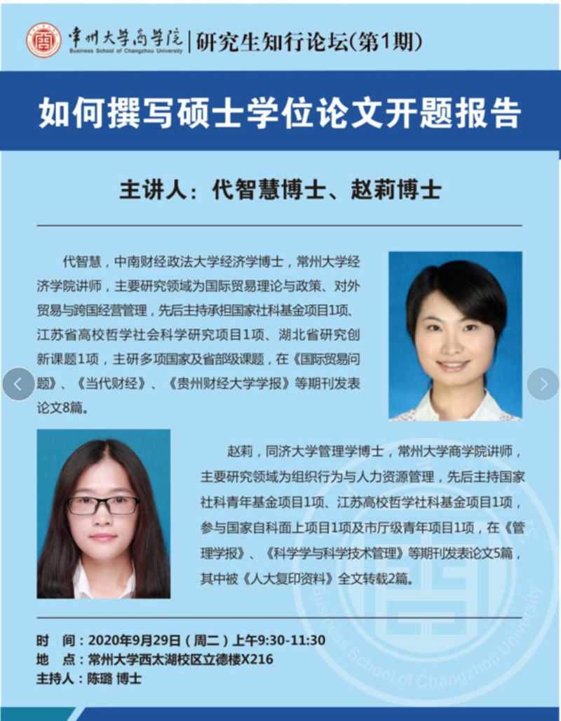 为提高研究生的科研素养,帮助研究生规范地开启毕业论文工作,威廉希尔官网于9月29日上午在立德楼X216教室举行了首期研究生知行论坛。论坛主题为“如何撰写硕士学位论文开题报告”,经济学院代智慧博士和威廉希尔官网赵莉博士担任主讲嘉宾,彭伟副经理和50余名研究生参加论坛。论坛由威廉希尔官网陈璐博士主持。 彭伟副经理为研究生知行论坛开讲致辞。他指出,在新学期研究生座谈调研的基础上,学院经充分酝酿策划,适时推出研究生知行论坛,旨在帮助研究生同学既能掌握工商管理学科的理论前沿,又能知晓最新的工商管理实践。他希望研究生同学们要做到知行合一,积极开展“顶天立地”的科学研究,争做新时代的创新型商科人才。随后,代智慧博士围绕“硕士研究生学位选题”,结合自身科研经历从“员工态度、选题、选题依据、研究内容、研究方案”等多个方面就研究生在开题报告中遇到的方法问题和选题困惑进行了详细深入的阐释;赵莉博士从“文献综述困惑、文献搜索、文献阅读、文献综述写作”四个方面就研究生在论文开题中的具体写作疑问进行了系统科学的指导,并就顶级中英文管理类期刊进行了普及。最后,两位主讲嘉宾就参会同学疑问一一进行了解答,这对研究生增强文献阅读能力、了解国内外相关研究的发展现状具有重要的指导意义。 论坛历时将近两个小时,主题明确、气氛欢快、干货满满,使研究生对科学研究有了更深的理解与感悟,有助于研究生高质量完成硕士学位论文开题报告的撰写。