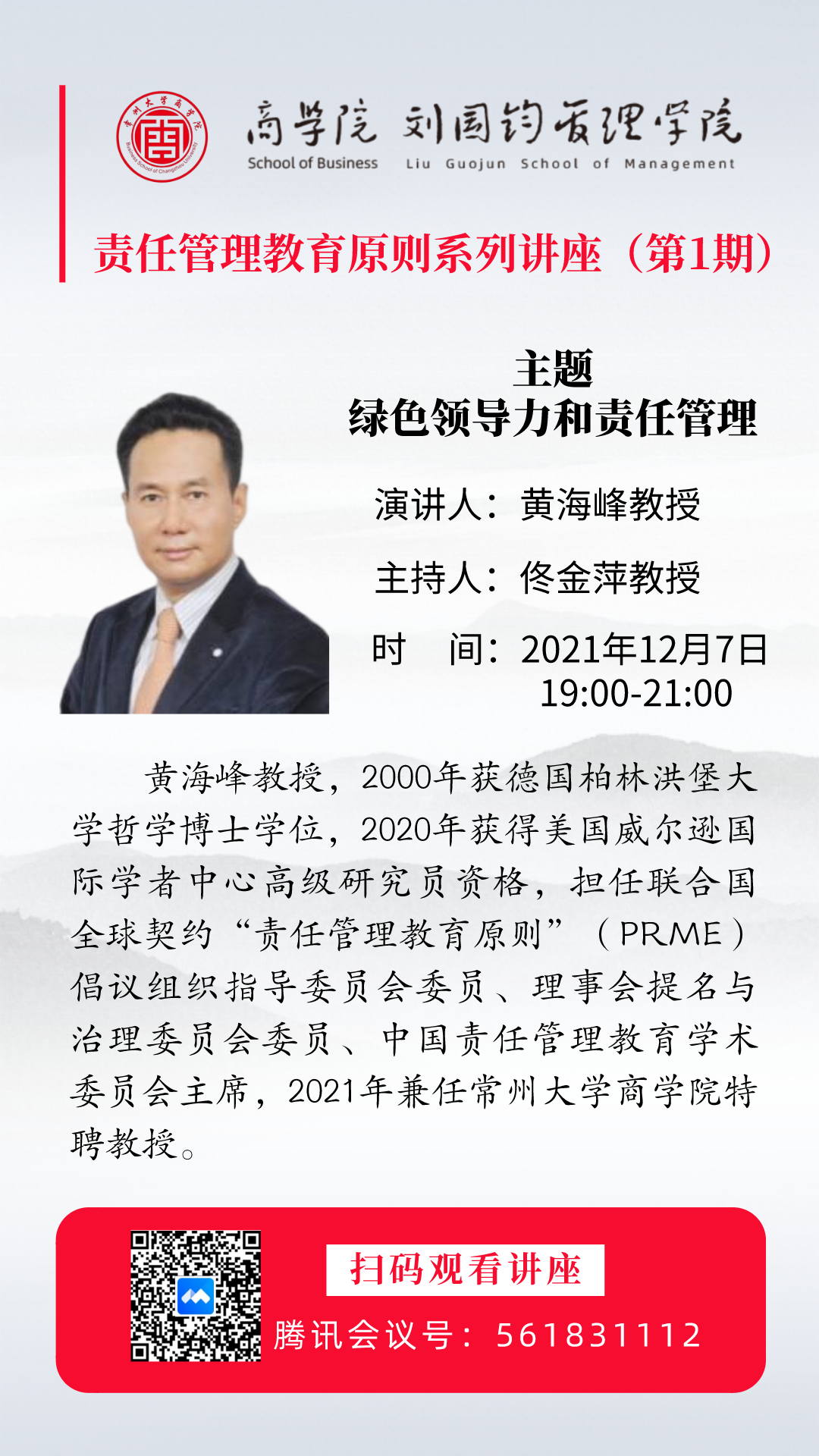 | 绿色领导力和责任管理——威廉希尔官网举办责任管理教育原则系列讲座(第1期) |